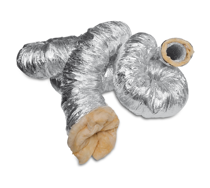 Tubo flessibile in alluminio con isolamento in lana di vetro sezione circolare.