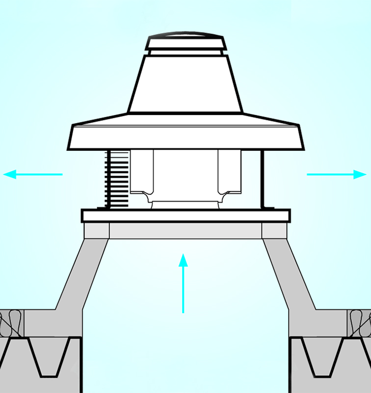 • Boccaglio di aspirazione a profilo aerodinamico per ottimizzare le prestazioni, facente corpo unico con la base e calibrato per ottimizzare il flusso d’aria.