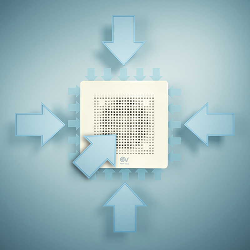 • Costruzione in resina plastica resistente all’invecchiamento riconducibile all’esposizione al sole (“UV resistant”). • Diametro nominale: 120 mm • Motore EC termicamente protetto, con albero montato su supporti con cuscinetti a sfere; 2 velocità di funzionamento controllate da una scheda elettronica. • Portata massima 130 m3/h • Equipaggiato di una valvola di non ritorno per evitare il rientro non voluto di aria quando spento. • Timer fisso a 6 minuti per il passaggio dalla velocità massima alla minima.