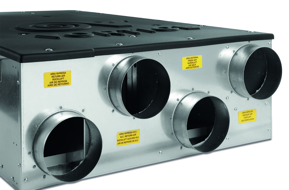 • Involucro in lamiera d’acciaio zincata con pannelli rimovibili. • 2 Motori EC (brushless) con alberi montati su supporti con cuscinetti a sfere abbinati a giranti centrifughe. • Possibilità di selezionare le velocità da 0 al Max mediante trimmer in base alle perdite di carico dell’impianto. • Portata in ventilazione tra 140 m3/h e 250 m3/h Portata in deumidificazione tra 250 m3/h e 500 m3/h • Scambiatore di calore ad altissima efficienza del tipo a flussi in controcorrente realizzato in materiale plastico (PS) • Contiene gas fluorato ad effetto serra. • Compressore funzionante con gas HFC-R410A • Predisposizione per termo-igrostato meccanico (cod. 22609) • Doppio condensatore ad acqua e aria • Flussostato • Valvola modulante a tre vie • Serranda di ricircolo motorizzata • Protezione antigelo • 2 filtri G4 • Elettronica di controllo con microprocessore, comprensiva di display LCD • Pannello comandi remoto RCP (codice 22607) disponibile in opzione • Prodotto ermeticamente sigillato